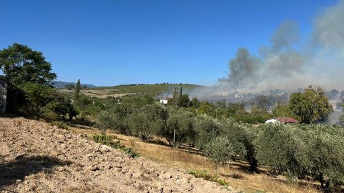 Osmaniye Sumbas'ta tarladan zeytinliğe sıçrayan yangına müdahale sürüyor