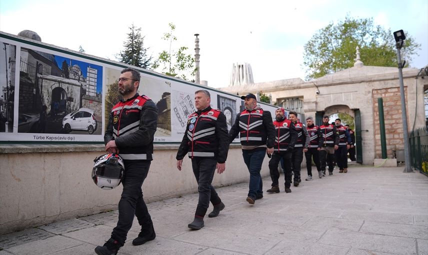 Fatih Camisi'ndeki türbeye gelen grup, burada bir süre dua ettikten sonra motosikletleriyle kortej halinde Çanakkale'ye hareket etti. Dernek Başkanı Burçin Özsayar, etkinlikle ilgili basın mensuplarına şu açıklamayı yaptı: 'Bugün Çanakkale'de ecdadımızı da ziyaret edeceğiz. Gezimizi burada başlatarak daha da anlamlı hale getirmek istedik.'