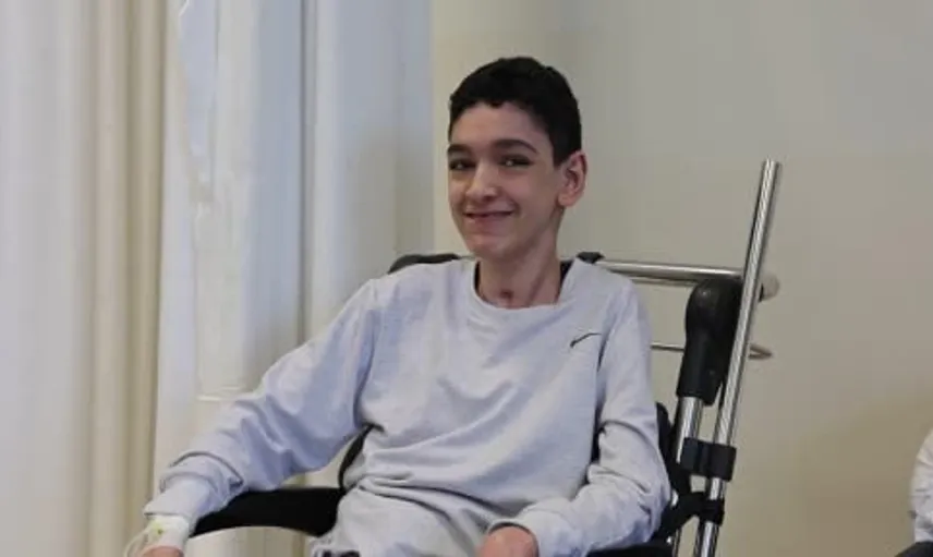 14 yaşındaki Aziz Enül, Bingöl'den Elazığ Fethi Sekin Şehir Hastanesine sevk edildikten sonra uygulanan cerrahi müdahaleler, immünoterapi ve kapsamlı rehabilitasyon programları sonucunda iki yıl süren bakımın ardından destekle yürümeye başladı.