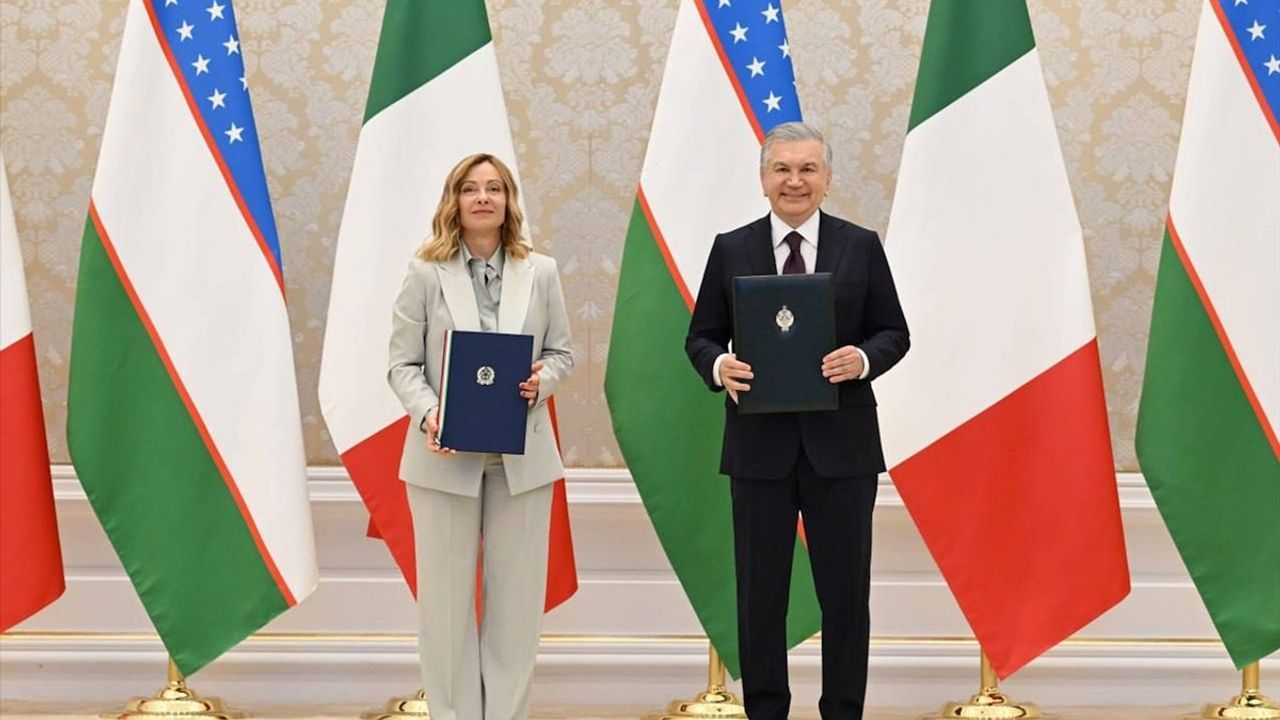 Özbekistan ve İtalya Stratejik Ortaklık İlişkilerini Geliştiriyor Özbekistan Cumhurbaşkanı Şevket Mirziyoyev ile İtalya Başbakanı Giorgia Meloni, iki ülke arasındaki stratejik ortaklık ilişkilerinin geliştirilmesine yönelik ortak bildiriyi imzaladı. Görüşme, tarihî Semerkand şehrinde gerçekleşti. Mirziyoyev, Semerkand Kongre Merkezi'nde Meloni ile yaptığı toplantıda,…