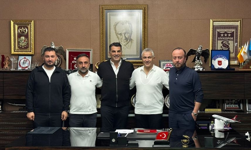 Trendyol 1. Lig ekiplerinden Özbelsan Sivaspor, teknik direktör Mehmet Altıparmak (sağ 2) ile anlaşma sağladı. İmza törenine Sivasspor Kulübü Başkanvekili Burak Özçoban (sağda) ile bazı yöneticiler katıldı.
