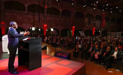 Özel, yaklaşan seçimleri bir referandum olarak tanımlayarak şu soruyu yöneltti: “Otokrasi mi, demokrasi mi?” Türkiye'nin otokratların koalisyonunun bir parçası mı yoksa Avrupa'nın bir parçası mı olacağı tercihi üzerinde durdu. Özgür Özel, Türkiye'nin demokratik Avrupa'nın ayrılmaz bir parçası olması gerektiğini ve hep birlikte güven içinde, barış içinde hareket edilmesi gerektiğini belirtti.
