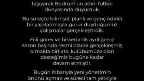Öztürk Ailesi, Bodrum Futbol Kulübü'ndeki fiili görev ve hissedarlık ayrılığının ardından sorumluluklarını yeni yönetime tamamen devrettiklerini açıkladı.