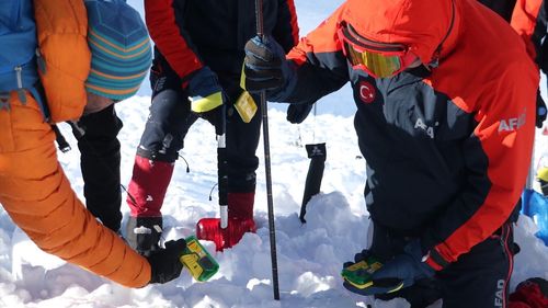 Palandöken Dağı'nda yerli ve yabancı eğitmenler tarafından gerçekleştirilen çığ tatbikatına yaklaşık 80 kişi katıldı.