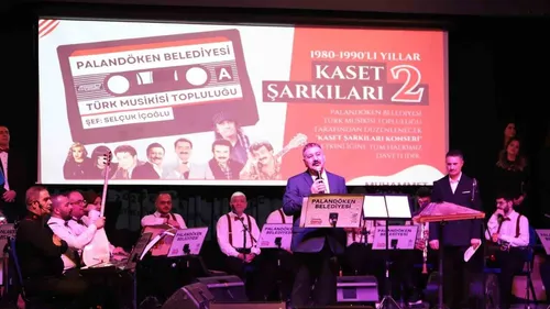 Palandöken Belediyesi Türk Musikisi Topluluğu'nun 'Kaset Şarkıları 2' konseri büyük ilgi gördü; merdiven boşlukları doldu ve topluluk 15. sahne performansını gerçekleştirdi.
