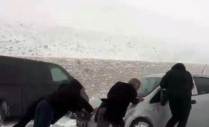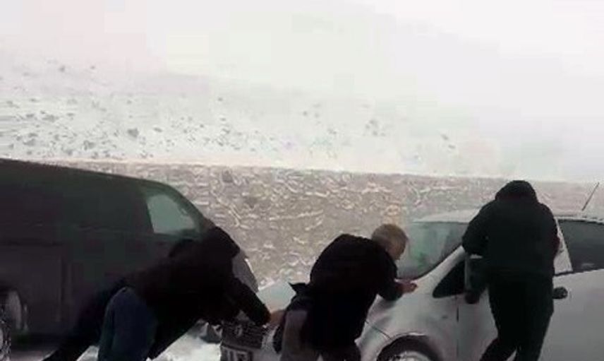 Kar yağışı sonrası bazı araçlar yolda kaldı. Buzlanma nedeniyle araçların ilerlemekte güçlük çektiği bölgede, diğer sürücülerin sağladığı halat yardımıyla kalan araçlar çekilerek kurtarıldı.