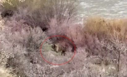 PALU İLÇESİNDE MURAT NEHRİ KENARINDA BİR BALIKÇI, ANNE AYI VE YAVRUSUNU GÖRÜNTÜLEDİ.