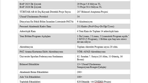 PAÜ Rektörü Prof. Dr. Mahmud Güngör, 2025-2026 döneminde kurumsal dönüşüm, altyapı yatırımları, akademik kalite, uluslararasılaşma ve öğrenci başarılarını içeren bir yıllık raporu açıkladı.