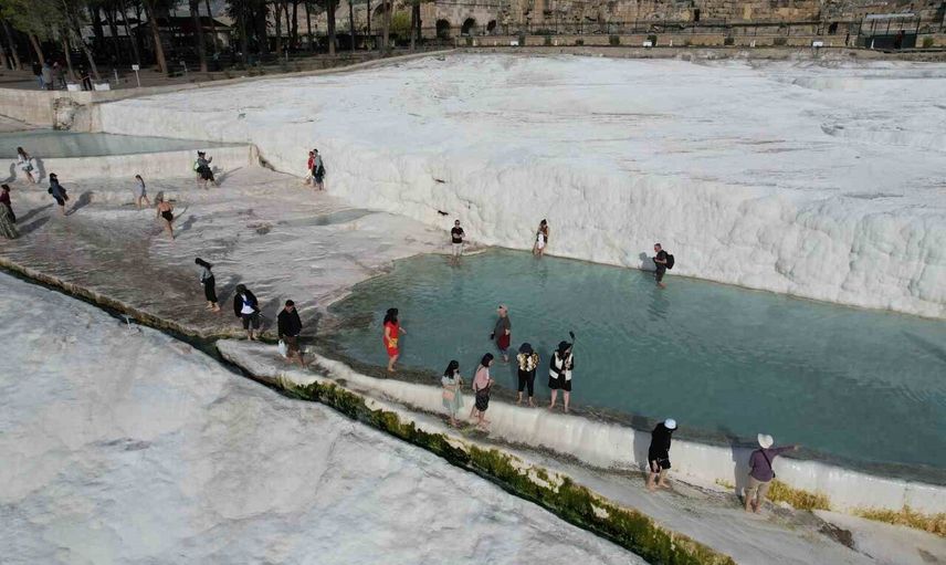 UNESCO Dünya Kültür Mirası'ndaki travertenler ziyaretçi akınına uğruyor