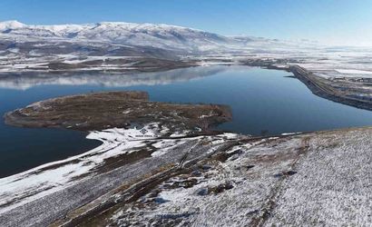 Patnos Barajı, soğuk havaya rağmen sunduğu eşsiz manzarasıyla dikkat çekiyor. Bölgeyi örten beyaz örtü ile barajın mavisi birbirine karışarak görsel bir kontrast oluşturuyor ve sabahın ilk ışıklarıyla öne çıkan detaylar kartpostallık görüntüler sunuyor.