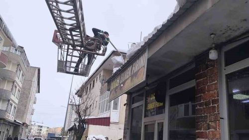 Patnos'ta çatılardaki buz sarkıtları ve kar kütlelerine karşı uyarı