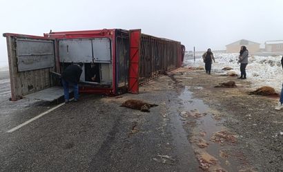 Patnos’ta hayvan yüklü tır devrildi: 10 küçükbaş telef oldu