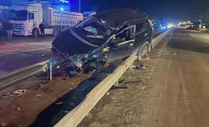Hatay'da, Payas-Dörtyol D817 Karayolu üzerinde seyir halindeki bir otomobil, başka bir otomobille çarpışmasının ardından sürücünün direksiyon hakimiyetini kaybetmesi sonucu orta refüje çıkarak bariyerin üstüne çıktı.