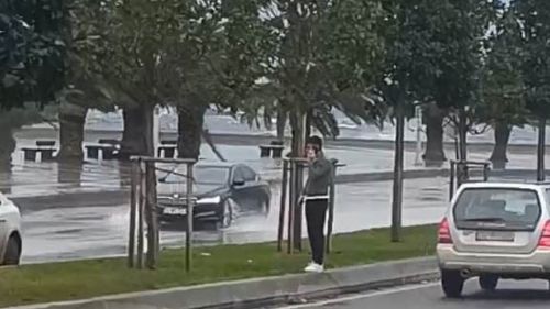 İstanbul'da etkili fırtına sonrası Pendik Sahili'nde deniz suyu sahil yoluna taştı; vatandaşların çektiği görüntülerde araçlar ve savrulan ağaçlar görünüyor.