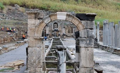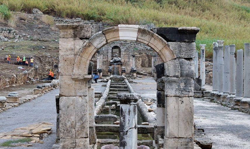 Dr. Dönmez, Kültür ve Turizm Bakanlığı tarafından desteklenen restorasyon çalışmalarının 2022 yılında başladığını ve bu süreçte Kestros Çeşmesi'ndeki su akıtma işlemlerinin tamamlandığını ifade etti. Çeşme, antik dönemde Kestros Nehri'nden alınan suyu kent merkezine taşıyarak önemli bir işlev görüyordu.