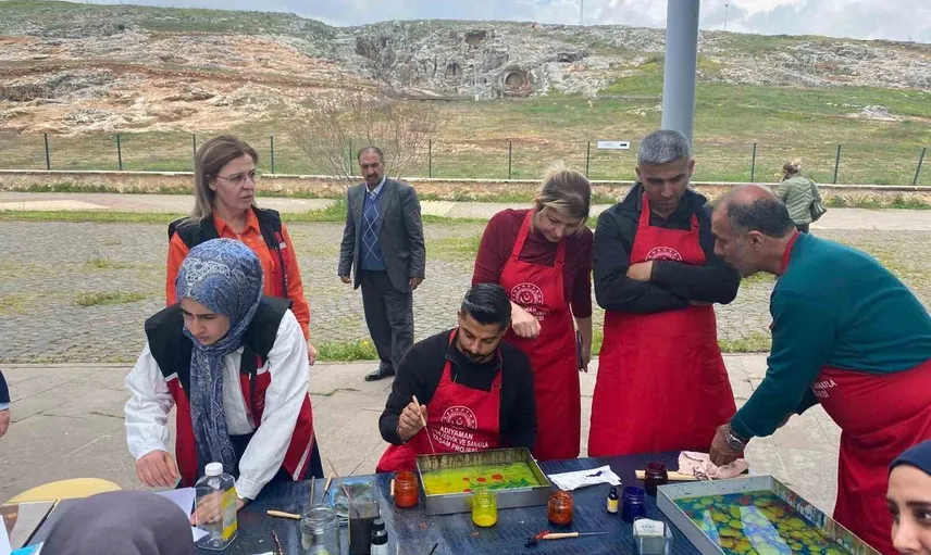 Adıyaman Aile ve Sosyal Hizmetler İl Müdürlüğü tarafından yürütülen ’Sanata Teşvik ve Sanatla Yaşam’ programı kapsamında, şehit yakınları ve gaziler için Perre Antik Kenti'nde ebru kursu düzenlendi. Etkinlik, katılımcılara hem sanatsal deneyim hem de duygusal paylaşım fırsatı sundu.