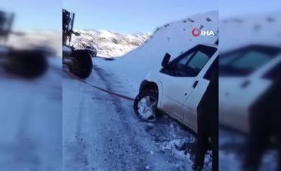 Pervari'de minibüs kar nedeniyle şarampole devrildi