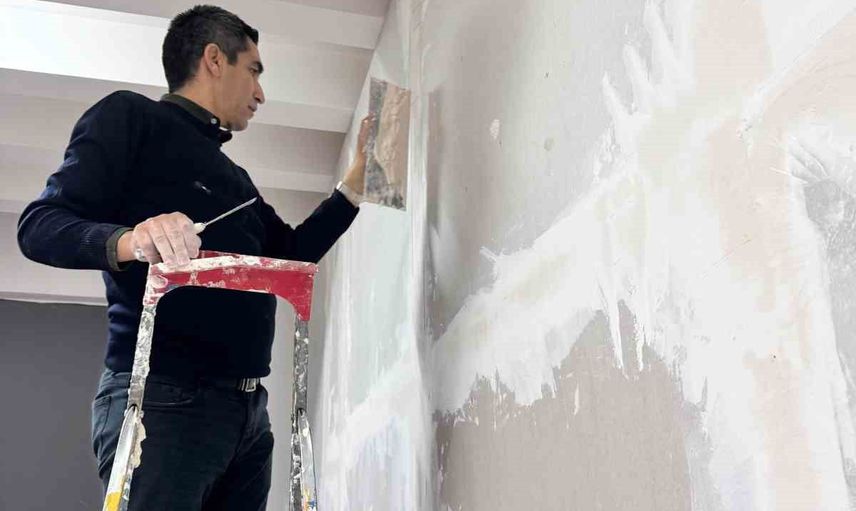 Pınarhisar MYO Müdürü Can Demirel okuldaki tadilatlarda bizzat çalışıyor