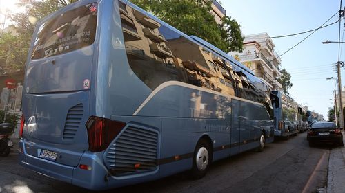 Pire Limanı'nda yaklaşık 500 kişi, KKE ve sol grupların desteğiyle İsrail'e ait yolcu gemisini yolcuların karaya çıkmasını engellemek amacıyla protesto etti.