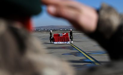 Suriye'nin kuzeyinde bir üs bölgesinde, 7 Şubat'ta bölücü terör örgütü mensupları tarafından açılan taciz ateşi sonucu yaralanan ve tedavi gördüğü hastanede şehit olan Piyade Uzman Çavuş Osman Oktay için Gaziantep'te tören düzenlendi.