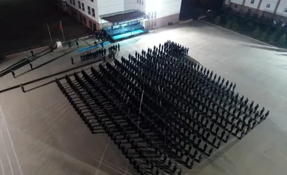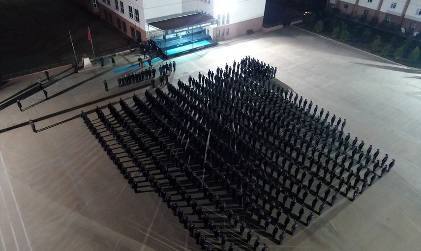 Erzincan'da eğitim gören polis adayları, Cumhuriyet'imizin 101. yıl dönümünü görkemli bir ışıklı koreografi gösterisiyle kutladı. Erzincan Polis Meslek Eğitim Merkezi'nde (POMEM) yer alan etkinlikte, 468 öğrenci, 29 Ekim Cumhuriyet Bayramı dolayısıyla bir araya geldi.