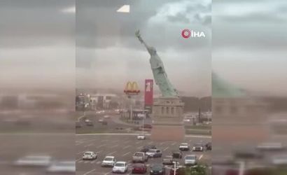 Brezilya'nın Rio Grande do Sul eyaletindeki Porto Alegre şehrinde etkili olan fırtına, Guaiba bölgesindeki bir mağazanın otoparkındaki 24 metrelik Özgürlük Heykeli replikasının devrilmesine neden oldu.