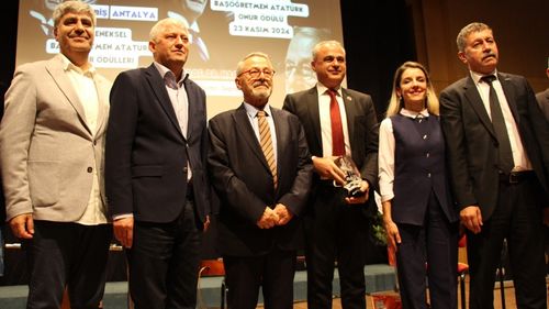 Prof. Dr. Naci Görür, Antalya'da Başöğretmen Atatürk Onur Ödülü'nü aldı. Törende Türkiye'deki eğitim değerleri vurgulandı.