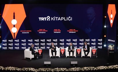 "TRT 2 Kitaplığı" tanıtım etkinliğinde Türk düşünce dünyasında derin izler bırakan Prof. Dr. Teoman Duralı ve Alev Alatlı'nın fikir dünyası, alanında uzman isimler tarafından ele alındı. Mücahit Erboğa'nın (solda) moderatörlüğünde gerçekleşen "Bilginin Peşinde Bir Ömür: Teoman Duralı" başlıklı oturuma, Prof. Dr. Cengiz Çakmak (sol 2), Prof. Dr. Ahmet Dağ (sağ 2)ve Prof. Dr. Ferudun Yılmaz (sağda) katıldı.