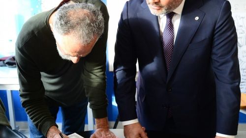 Prof. Dr. Yusuf Adıgüzel, 17. Uluslararası Anadolu Kaligrafi ve Tipografi Etkinliği kapsamındaki atölyeyi ziyaret ederek çalışmaları, öğrencileri ve uluslararası sanatçıları yerinde inceledi.