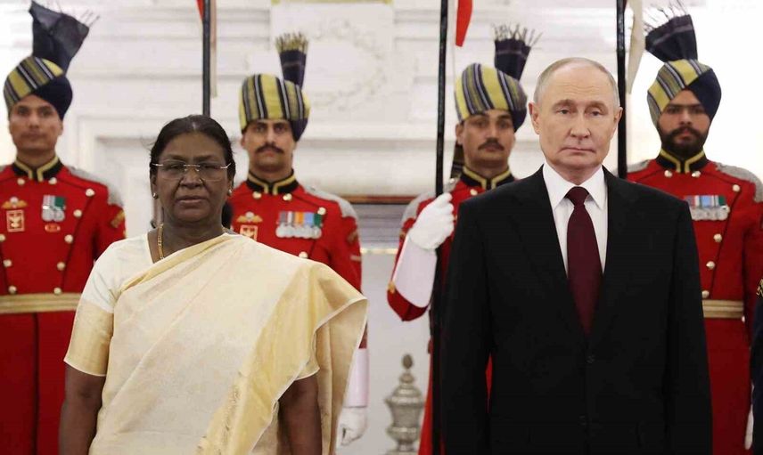 Rusya Devlet Başkanı Vladimir Putin, resmi ziyaret kapsamında bulunduğu Hindistan’da onuruna düzenlenen resepsiyona katıldı. Etkinlikte iki ülke marşları çalındı ve Hindistan Cumhurbaşkanı Draupadi Murmu ile Başbakan Narendra Modi ve beraberlerindeki yetkililer hazır bulundu.