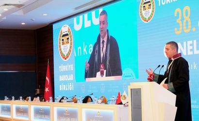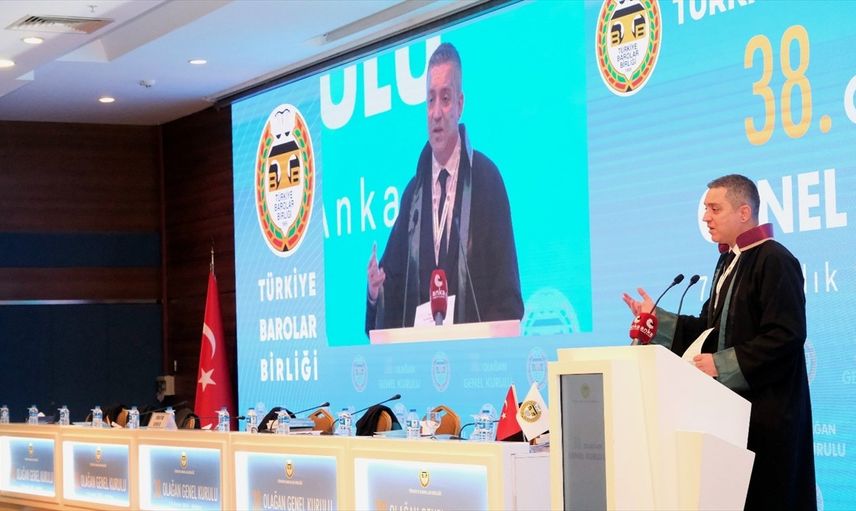 Türkiye Barolar Birliği 38. Olağan Genel Kurulu'nda, Türkiye Barolar Birliği başkanlığına, Ramiz Erinç Sağkan (fotoğrafta) yeniden seçildi. Sağkan, genel kurulda konuşma yaptı.