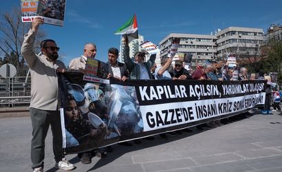 Protestocular, "Kapılar açılsın, yardımlar ulaşsın" ve "Gazze'de insani kriz sona erdirilsin" yazılı pankartlar taşıyarak, Filistin bayraklarıyla İsrail karşıtı sloganlar attılar.