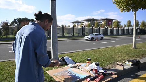 Ressamlar, 29 Ekim Cumhuriyet Bayramı kapsamında Cumhurbaşkanlığı himayesinde düzenlenen sıcak hava balonu etkinliğini yağlı boya ile tuvale aktardı.