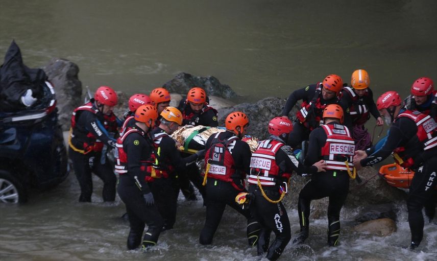 Tatbikatta, senaryo gereği içerisinde bir kişinin bulunduğu otomobil, yağış sonrasında sel sularına kapılarak dereye düştü. Olay yerine ulaşan ekipler, araçtaki kişiyi kurtarma çalışmalarına başladı. Dere içerisindeki araç, dalgıçların yer tespitinin ardından iş makinesi yardımıyla sudan çıkartıldı.