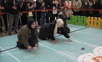 Kurulan parkurda minikler, ailelerinden bir kişinin parkurun başında bırakıp diğerinin sonundaki çeşitli yöntemlerle çağırmasıyla ilerledi. Miniklerin sevdiği oyuncaklar, eşyalar ve sevdiği kişilerle bitiş çizgisine ulaşması beklendi; bazı çocuklar yarışı keyifle tamamlarken kalabalık ve alkışlar etkisiyle ağlayanlar da oldu. Asel adlı küçük yarışmacının, bitiş çizgisine kadar gelip arkadaşlarının geride kaldığını görünce geri dönmesi, ortamda hem tebessüm hem de samimi bir dayanışma duygusu yarattı.