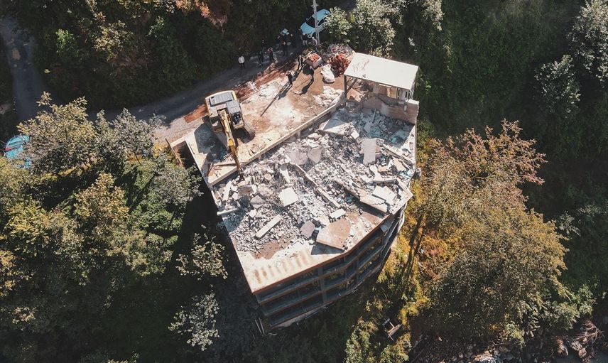 Rize'de Fırtına Vadisi üzerindeki izinsiz ve taşkın riski altındaki yapılar yıkılıyor.
