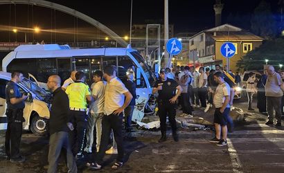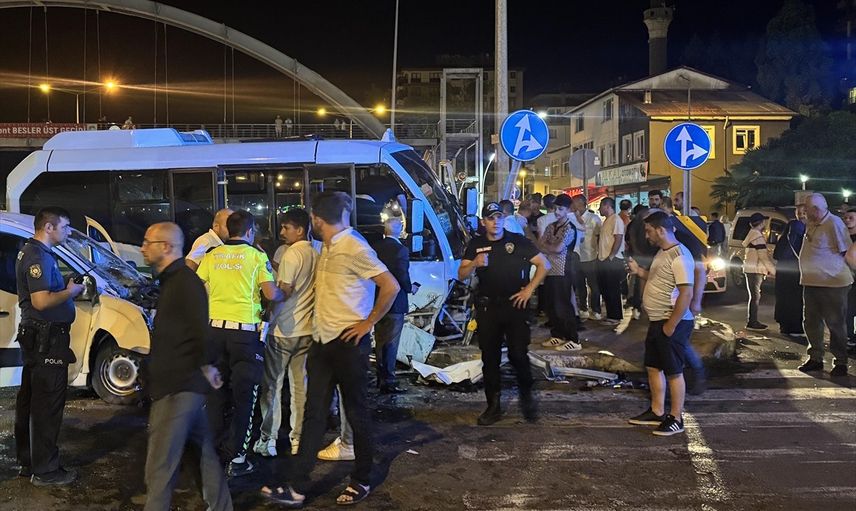 Rize'de minibüs ile hafif ticari aracın çarpışması sonucu 10 kişi yaralandı.