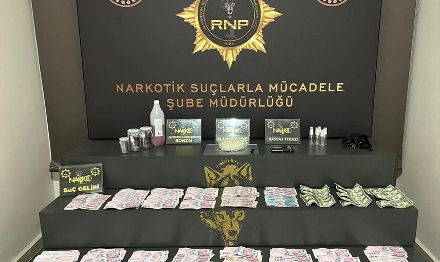 Rize'de düzenlenen uyuşturucu operasyonunda gözaltına alınan 14 şüpheliden 10'u tutuklandı. Yapılan aramalarda, 379,47 gram bonzai ham maddesi, 22,13 gram metamfetamin, 19,33 gram esrar, 484 uyuşturucu hap ve kullanım aparatları, 3 kenevir bitkisi, 2 hassas terazi, 1 büyük boy aseton maddesi, 2 ruhsatsız tabanca, 3 tabanca şarjörü, 55 tabanca fişeği, 155 bin 740 lira, 32 dolar ve 20 avro ele geçirildi.
