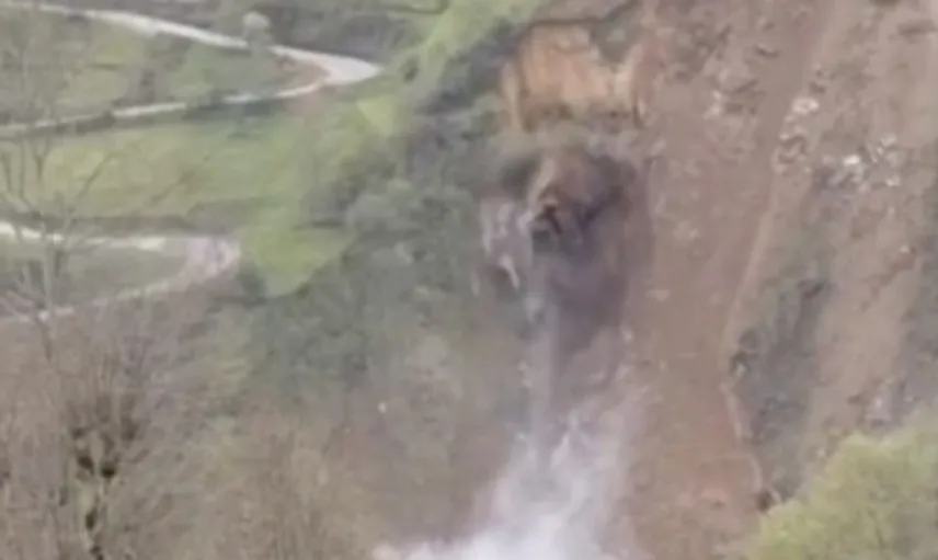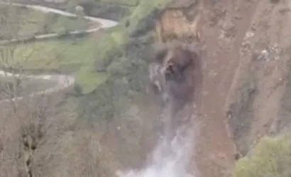 Rize’nin Ardeşen ilçesine bağlı Yavuz Köyü ile Seslikaya Köyü sınırında meydana gelen heyelan anı, bir vatandaşın cep telefonu kamerasına kaydedildi. Yamaçtan kopan büyük kaya parçasının, Fırtına Deresi’nin Tunca‑Zuğem kolundaki dere yatağına düştüğü anlar görüntülere yansıdı.