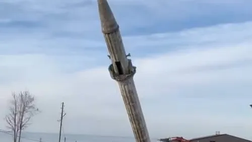 Rize Pazar Sahil Köyü'nde yeni caminin açılmasının ardından 1975 yapımı eski caminin minaresi iş makineleriyle kontrollü şekilde yıkıldı.
