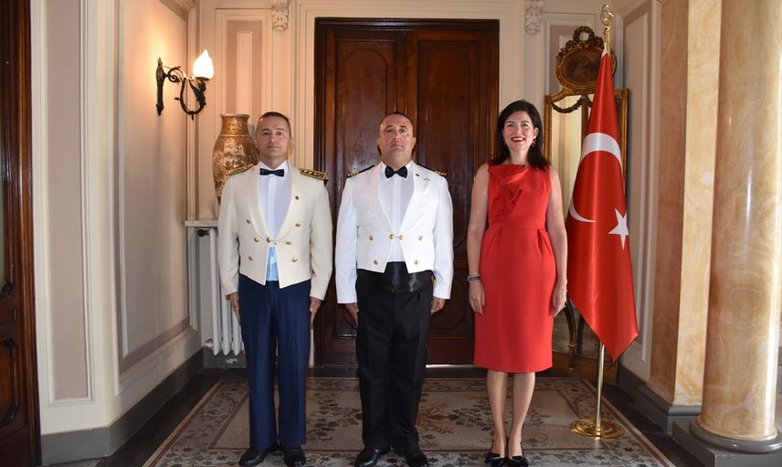 İtalya'nın başkenti Roma'da 30 Ağustos Zafer Bayramı ve Türk Silahlı Kuvvetler Günü düzenlenen resepsiyonla kutlandı. Türkiye'nin Roma Büyükelçisi Elif Çomoğlu Ülgen (sağ 2), Roma Büyükelçiliği Silahlı Kuvvetler ve Deniz Ataşesi Albay Ali Öztop (sol 2) ve Silahlı Kuvvetler Hava Ataşesi Albay Mustafa Can Engür (solda), resepsiyona gelen konuklarını tek tek kapıda karşıladı.