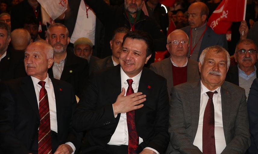 Saadet Partisi Genel Başkanı Mahmut Arıkan (ortada), partisinin Yüreğir Kültür Merkezi’nde düzenlenen 7. Olağan İl Kongresi'ne katıldı.