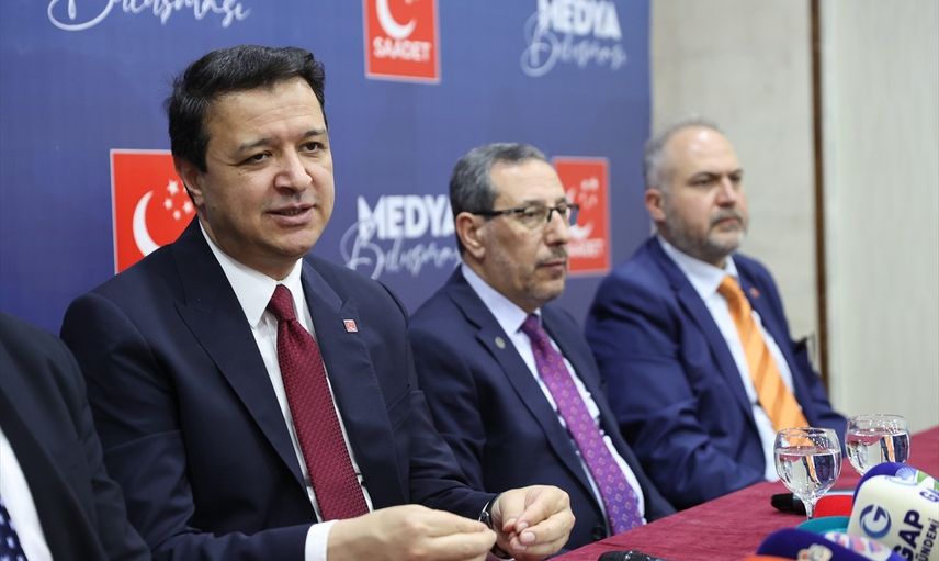 Saadet Partisi Genel Başkanı Mahmut Arıkan (ortada), Şanlıurfa'da bir otelde basın toplantısı düzenledi.