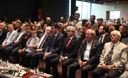 Saadet Partisi Genel Başkanı Mahmut Arıkan (sağ 4), partisinin Samsun Büyükşehir Belediyesi Ömer Halisdemir Çok Amaçlı Salon'da düzenlenen 8. Olağan Samsun İl Kongresi'ne katıldı.