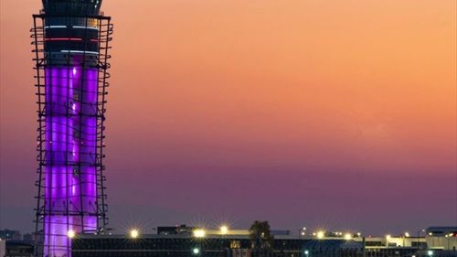 Sabiha Gökçen Havalimanı Hava Trafik Kulesi Mor Renkte Işıklı