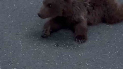 Safranbolu'da Beştepeler mevkiinde kara yolunda yaralı halde bulunan yavru ayı, vatandaşların ihbarı üzerine DKMP ekiplerine teslim edilip tedaviye götürüldü.