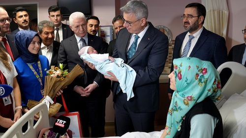 Bakan Memişoğlu, İstanbul'da suda doğan yeni yılın ilk bebeği Kerem Ali'yi ziyaret etti ve aileyi tebrik etti.