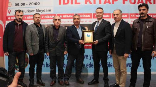 Sağlık-Sen Şırnak Şube Başkanı Sabgatullah Anmal, İdil Kitap Fuarı kapanışında Kaymakam Anıl Adıgüzel'e ilçeye katkılarından dolayı 'Hizmet' plaketi verdi.