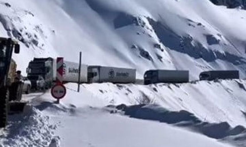 Sahara Geçidi'nde buzlanma nedeniyle tır bariyere çarptı, yol trafiğe kapandı