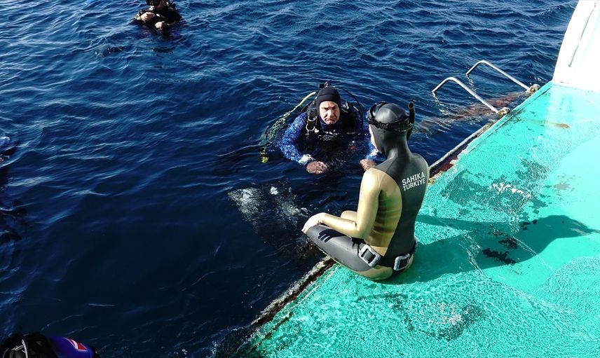 Dünya dalış rekortmeni ve milli sporcu Şahika Ercümen, Balıkesir'in gözde tatil beldesi Ayvalık'ta, su altı güzelliklerini tanıtmak amacıyla dalış gerçekleştirdi. Ercümen, Uluslararası Zeytin Hasat Festivali çerçevesinde, fırtınalı hava koşullarına rağmen, Kerbela mevkisinde tüpsüz dalış yaptı.